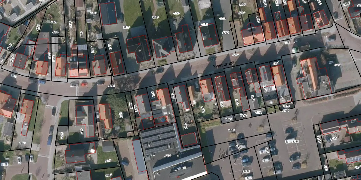 Het perceel waarop Zwinstraat 49 staat heeft een oppervlakte van 307 m². Dit is een groot perceel. De perceeloppervlakte wordt geregistreerd door het Kadaster. Gedetailleerde informatie over de maten van dit perceel kunt u vinden in het rapport Kadastrale kaart met maatvoering van Zwinstraat 49.