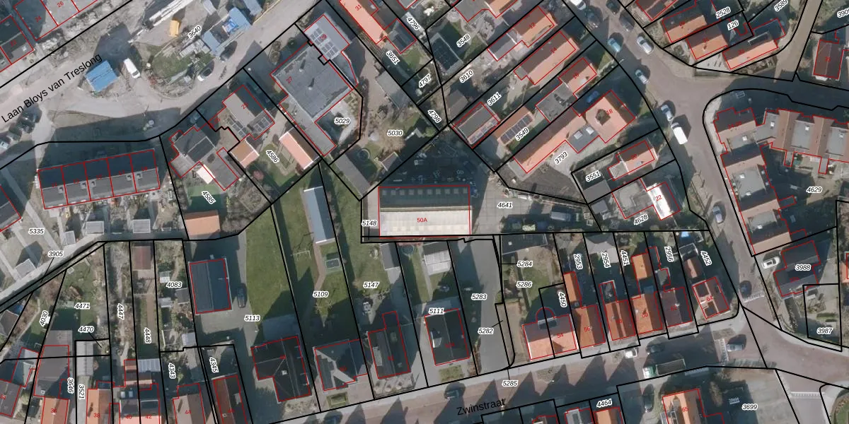 Het perceel waarop Zwinstraat 50-a staat heeft een oppervlakte van 802 m². Dit is een groot perceel. De perceeloppervlakte wordt geregistreerd door het Kadaster. Gedetailleerde informatie over de maten van dit perceel kunt u vinden in het rapport Kadastrale kaart met maatvoering van Zwinstraat 50-a.