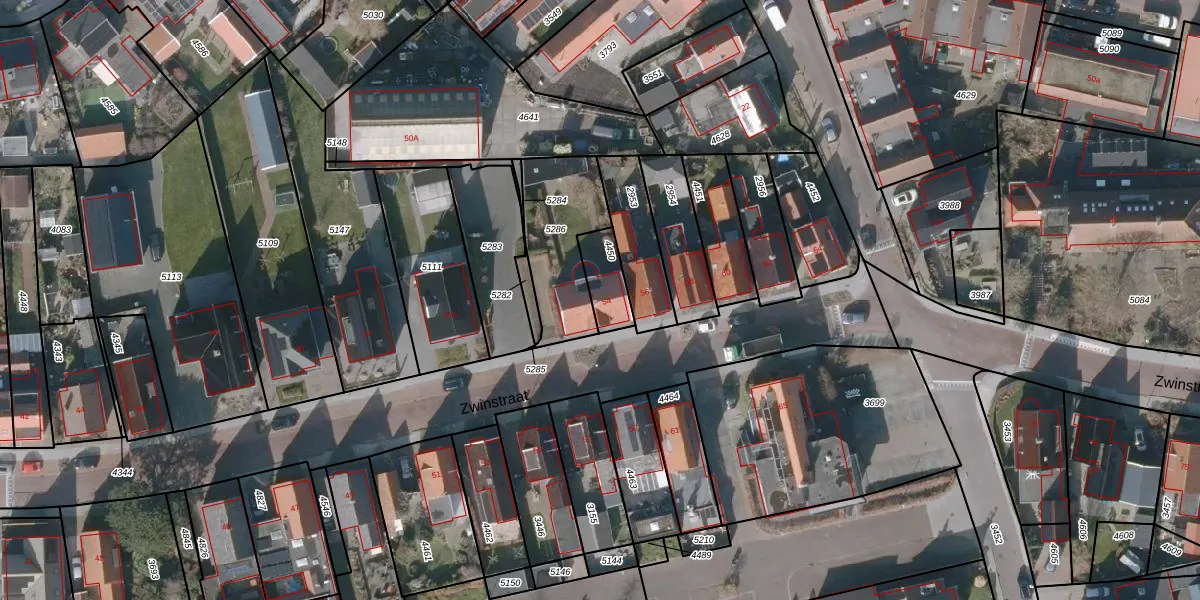 Het perceel waarop Zwinstraat 54 staat heeft een oppervlakte van 103 m². Dit is een middelgroot perceel. De perceeloppervlakte wordt geregistreerd door het Kadaster. Gedetailleerde informatie over de maten van dit perceel kunt u vinden in het rapport Kadastrale kaart met maatvoering van Zwinstraat 54.