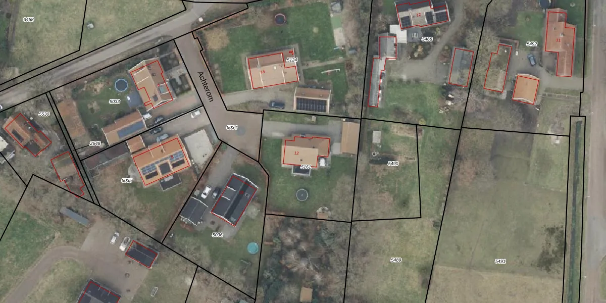 Achterom 12 is gelegen op kadastraal perceel DNK00O5161. Deze kadastrale aanduiding is uniek en wordt gebruikt door het Kadaster om eigendomsrechten en andere zakelijke rechten vast te leggen. Het perceel maakt onderdeel uit van de kadastrale gemeente Denekamp.