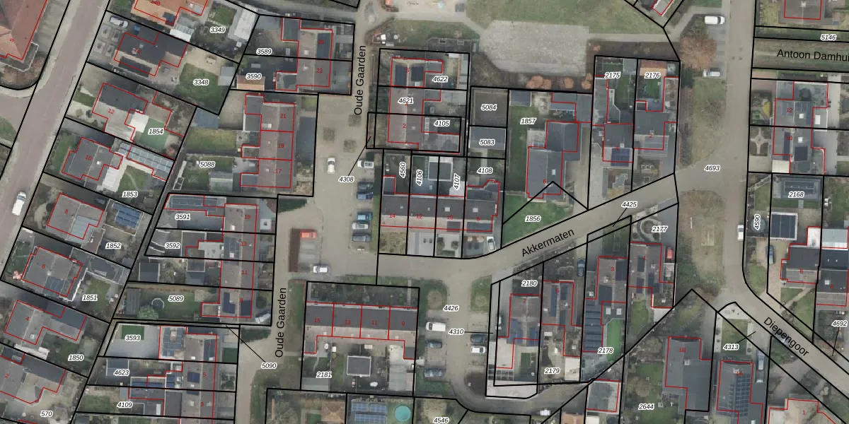 Akkermaten 12 is gelegen op kadastraal perceel DNK00O4106. Deze kadastrale aanduiding is uniek en wordt gebruikt door het Kadaster om eigendomsrechten en andere zakelijke rechten vast te leggen. Het perceel maakt onderdeel uit van de kadastrale gemeente Denekamp.