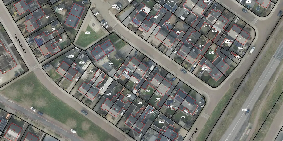 Het perceel waarop Anjerstraat 9 staat heeft een oppervlakte van 265 m². Dit is een middelgroot perceel. De perceeloppervlakte wordt geregistreerd door het Kadaster. Gedetailleerde informatie over de maten van dit perceel kunt u vinden in het rapport Kadastrale kaart met maatvoering van Anjerstraat 9.
