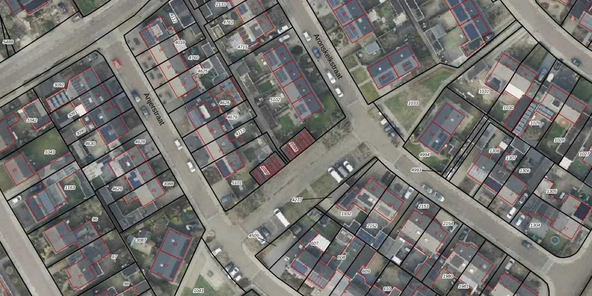 Het perceel waarop Aronskelkstraat 15-BX02 staat heeft een oppervlakte van 65 m². Dit is een klein perceel. De perceeloppervlakte wordt geregistreerd door het Kadaster. Gedetailleerde informatie over de maten van dit perceel kunt u vinden in het rapport Kadastrale kaart met maatvoering van Aronskelkstraat 15-BX02.
