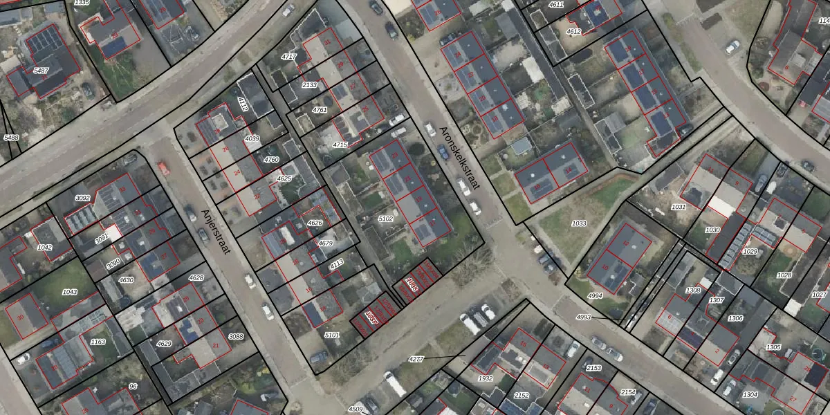 Het perceel waarop Aronskelkstraat 19 staat heeft een oppervlakte van 885 m². Dit is een groot perceel. De perceeloppervlakte wordt geregistreerd door het Kadaster. Gedetailleerde informatie over de maten van dit perceel kunt u vinden in het rapport Kadastrale kaart met maatvoering van Aronskelkstraat 19.