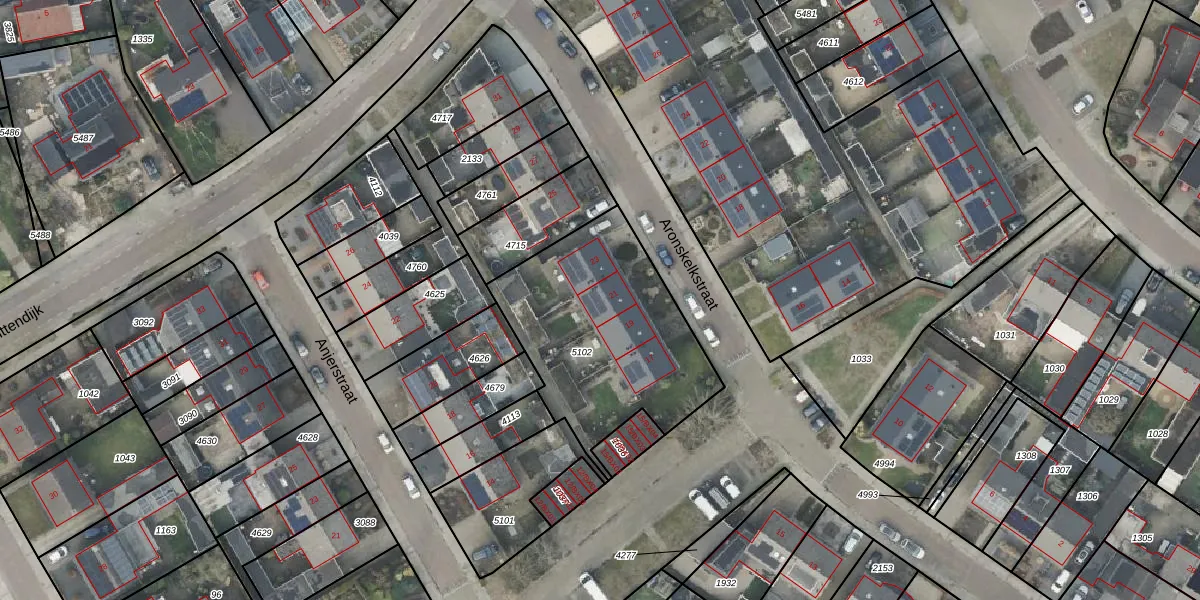 Het perceel waarop Aronskelkstraat 21 staat heeft een oppervlakte van 885 m². Dit is een groot perceel. De perceeloppervlakte wordt geregistreerd door het Kadaster. Gedetailleerde informatie over de maten van dit perceel kunt u vinden in het rapport Kadastrale kaart met maatvoering van Aronskelkstraat 21.