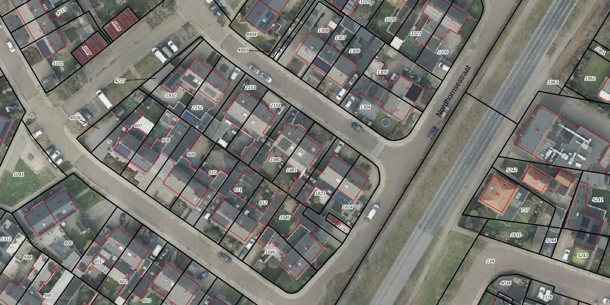 Gebruik de zoekbalk of klik op een perceel voor informatie over de adressen binnen dit perceel.