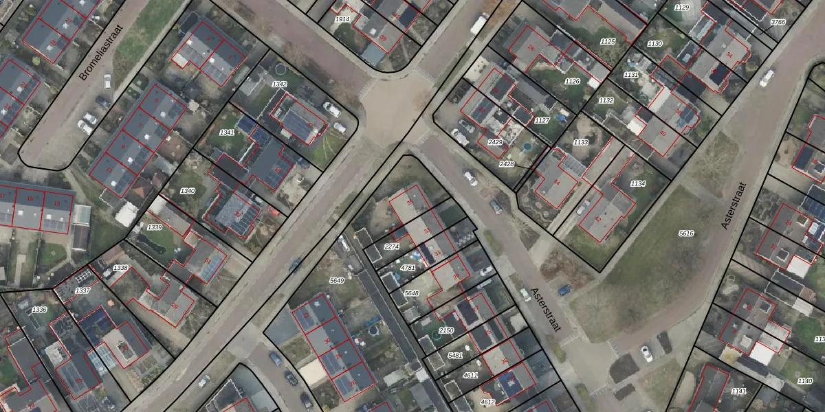 Het perceel waarop Asterstraat 35 staat heeft een oppervlakte van 3393 m². Dit is een zeer groot perceel. De perceeloppervlakte wordt geregistreerd door het Kadaster. Gedetailleerde informatie over de maten van dit perceel kunt u vinden in het rapport Kadastrale kaart met maatvoering van Asterstraat 35.