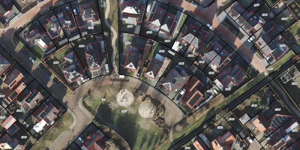Het perceel waarop Baveldspad 7 staat heeft een oppervlakte van 407 m². Dit is een groot perceel. De perceeloppervlakte wordt geregistreerd door het Kadaster. Gedetailleerde informatie over de maten van dit perceel kunt u vinden in het rapport Kadastrale kaart met maatvoering van Baveldspad 7.