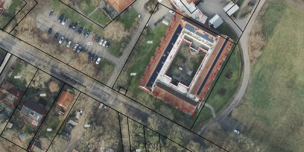 Het perceel waarop Berghumerstraat 15-020 staat heeft een oppervlakte van 3735 m². Dit is een zeer groot perceel. De perceeloppervlakte wordt geregistreerd door het Kadaster. Gedetailleerde informatie over de maten van dit perceel kunt u vinden in het rapport Kadastrale kaart met maatvoering van Berghumerstraat 15-020.