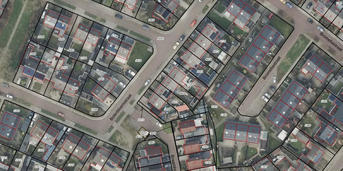 Gebruik de zoekbalk of klik op een perceel voor informatie over de adressen binnen dit perceel.