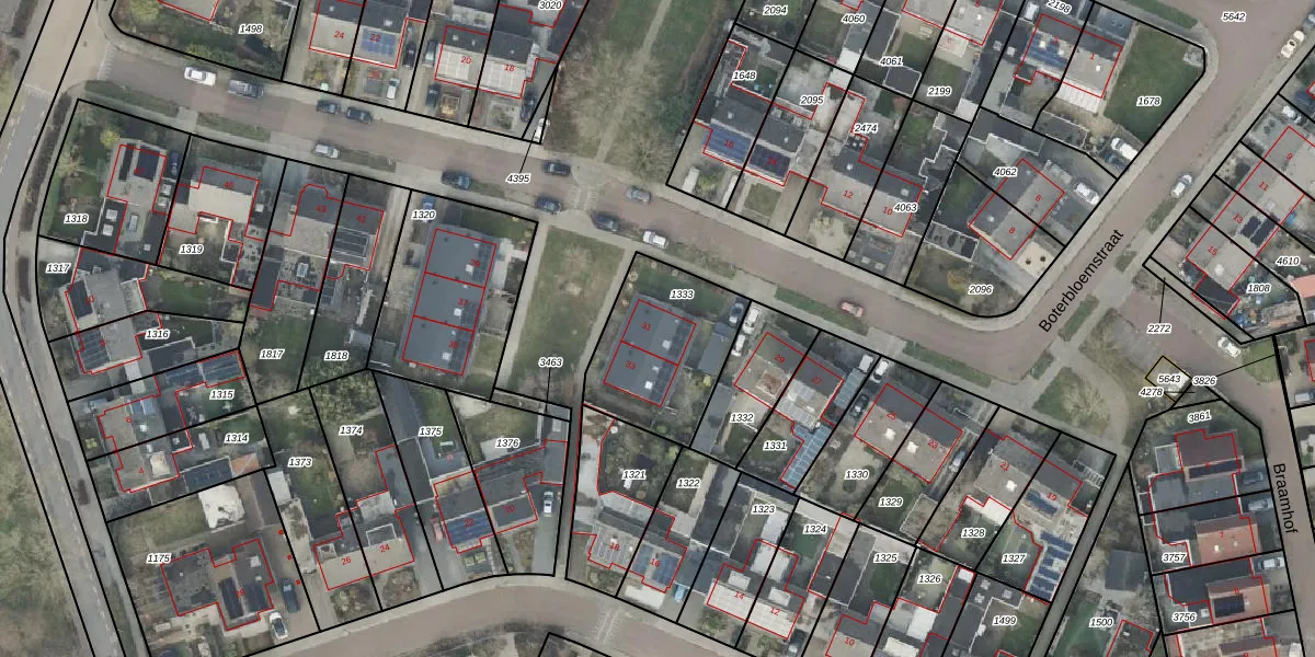 Het perceel waarop Boterbloemstraat 31 staat heeft een oppervlakte van 455 m². Dit is een groot perceel. De perceeloppervlakte wordt geregistreerd door het Kadaster. Gedetailleerde informatie over de maten van dit perceel kunt u vinden in het rapport Kadastrale kaart met maatvoering van Boterbloemstraat 31.