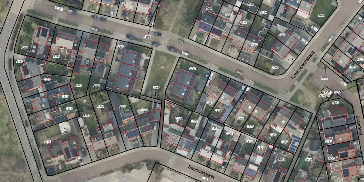 Het perceel waarop Boterbloemstraat 33 staat heeft een oppervlakte van 455 m². Dit is een groot perceel. De perceeloppervlakte wordt geregistreerd door het Kadaster. Gedetailleerde informatie over de maten van dit perceel kunt u vinden in het rapport Kadastrale kaart met maatvoering van Boterbloemstraat 33.