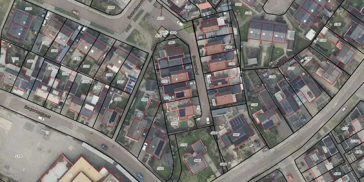 Gebruik de zoekbalk of klik op een perceel voor informatie over de adressen binnen dit perceel.