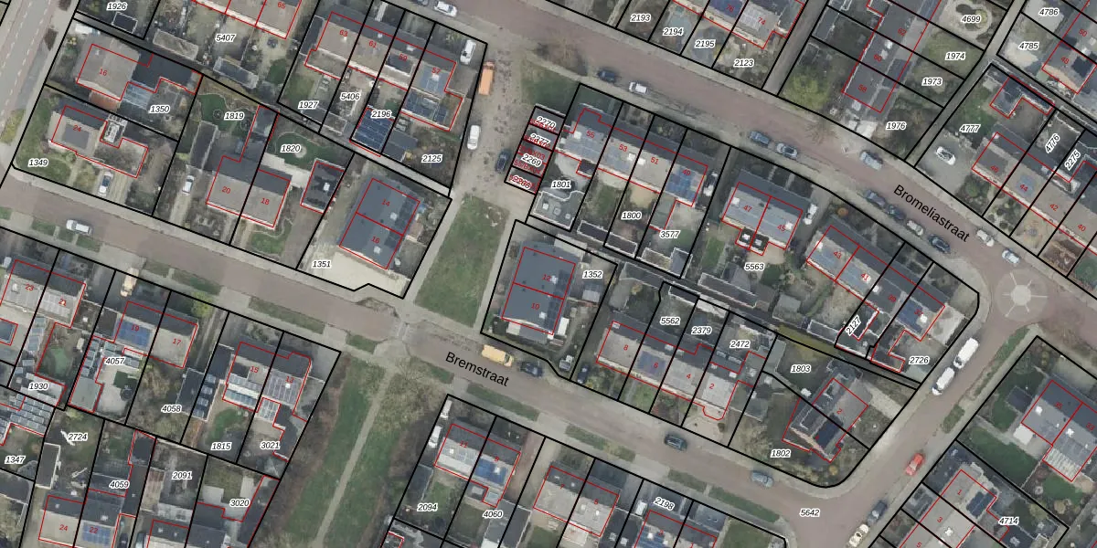 Het perceel waarop Bremstraat 12 staat heeft een oppervlakte van 423 m². Dit is een groot perceel. De perceeloppervlakte wordt geregistreerd door het Kadaster. Gedetailleerde informatie over de maten van dit perceel kunt u vinden in het rapport Kadastrale kaart met maatvoering van Bremstraat 12.