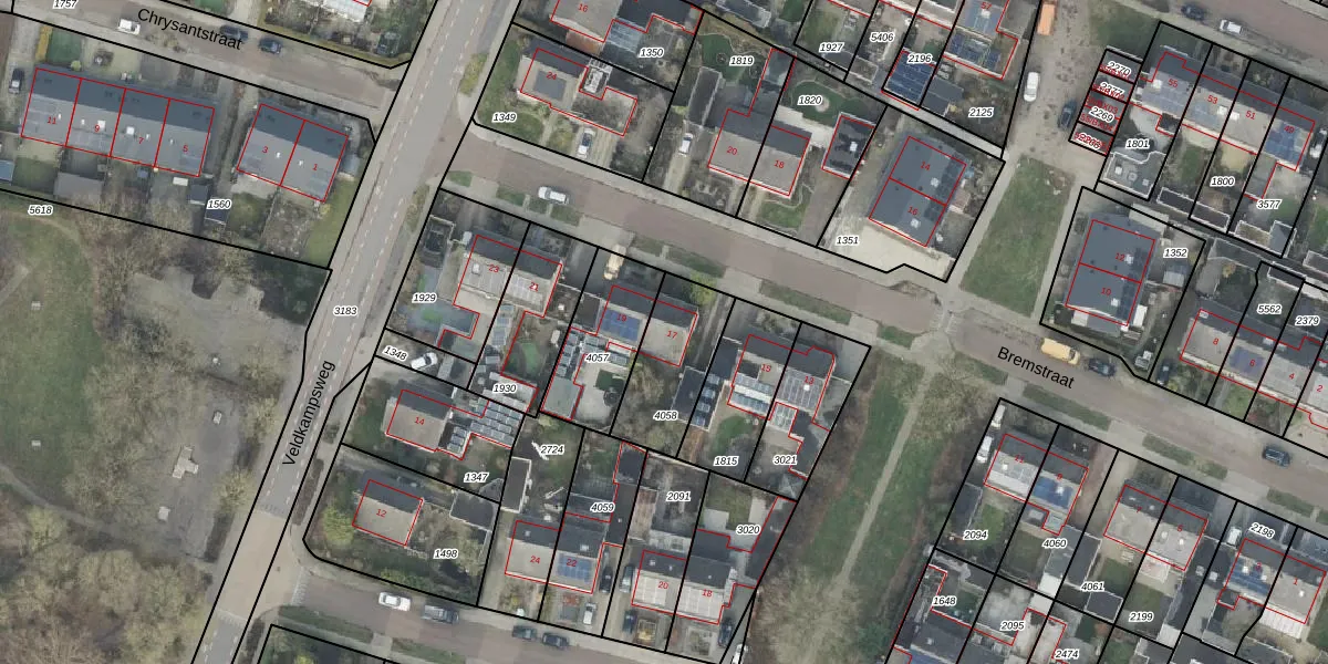 Gebruik de zoekbalk of klik op een perceel voor informatie over de adressen binnen dit perceel.