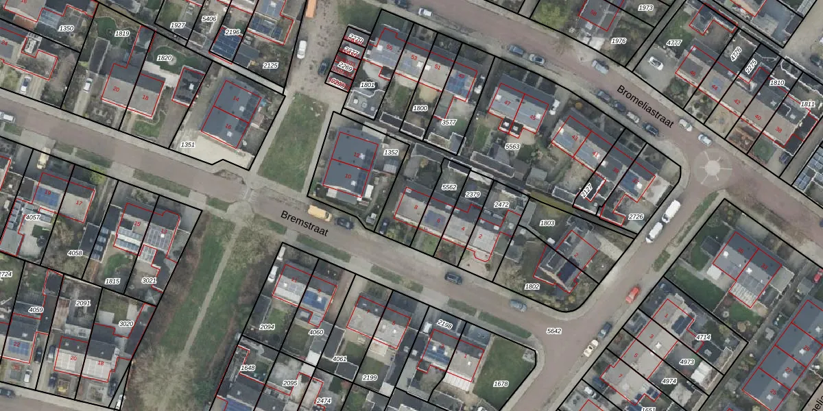 Het perceel waarop Bremstraat 8 staat heeft een oppervlakte van 1387 m². Dit is een zeer groot perceel. De perceeloppervlakte wordt geregistreerd door het Kadaster. Gedetailleerde informatie over de maten van dit perceel kunt u vinden in het rapport Kadastrale kaart met maatvoering van Bremstraat 8.