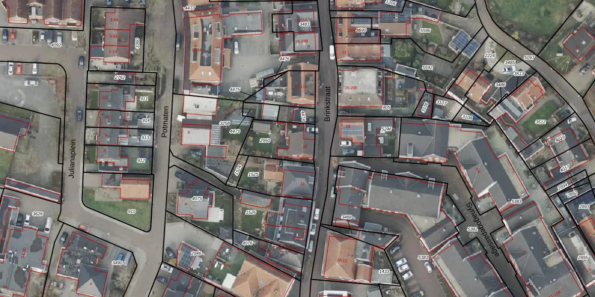 Brinkstraat 15 is gelegen op kadastraal perceel DNK00O2950. Deze kadastrale aanduiding is uniek en wordt gebruikt door het Kadaster om eigendomsrechten en andere zakelijke rechten vast te leggen. Het perceel maakt onderdeel uit van de kadastrale gemeente Denekamp.