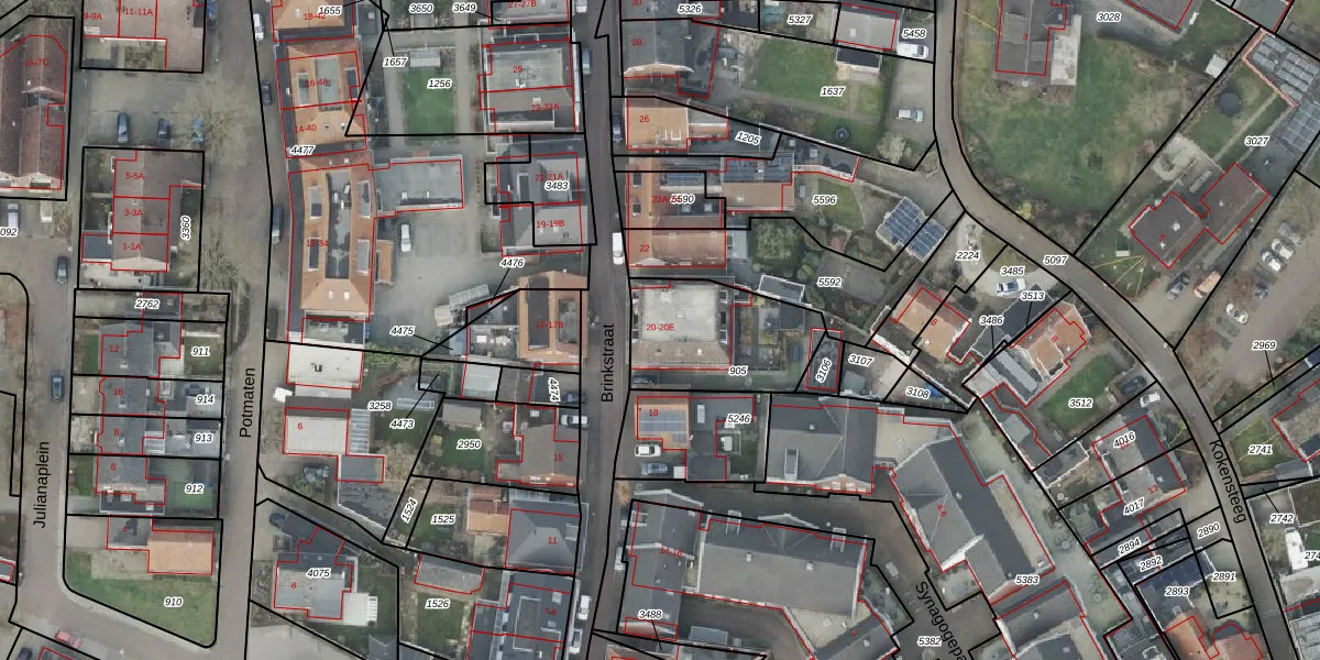 Het perceel waarop Brinkstraat 20-B staat heeft een oppervlakte van 430 m². Dit is een groot perceel. De perceeloppervlakte wordt geregistreerd door het Kadaster. Gedetailleerde informatie over de maten van dit perceel kunt u vinden in het rapport Kadastrale kaart met maatvoering van Brinkstraat 20-B.