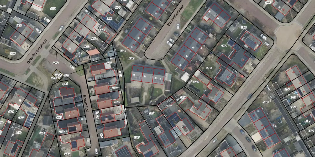 Het perceel waarop Bromeliastraat 13 staat heeft een oppervlakte van 4121 m². Dit is een zeer groot perceel. De perceeloppervlakte wordt geregistreerd door het Kadaster. Gedetailleerde informatie over de maten van dit perceel kunt u vinden in het rapport Kadastrale kaart met maatvoering van Bromeliastraat 13.