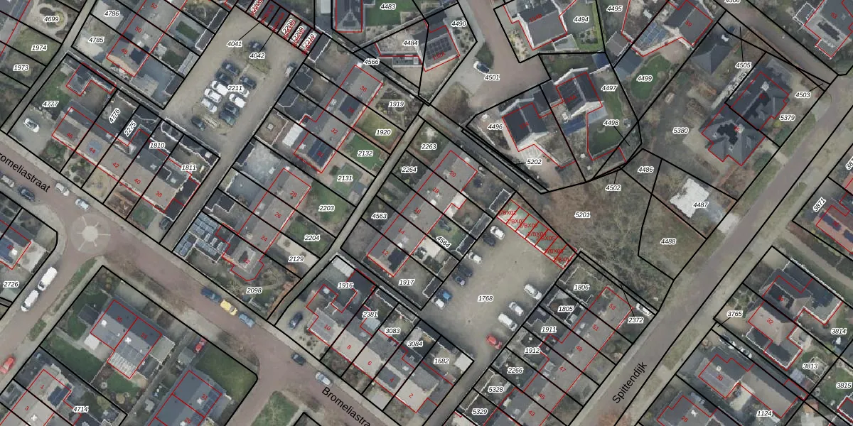 Het perceel waarop Bromeliastraat 16 staat heeft een oppervlakte van 162 m². Dit is een middelgroot perceel. De perceeloppervlakte wordt geregistreerd door het Kadaster. Gedetailleerde informatie over de maten van dit perceel kunt u vinden in het rapport Kadastrale kaart met maatvoering van Bromeliastraat 16.