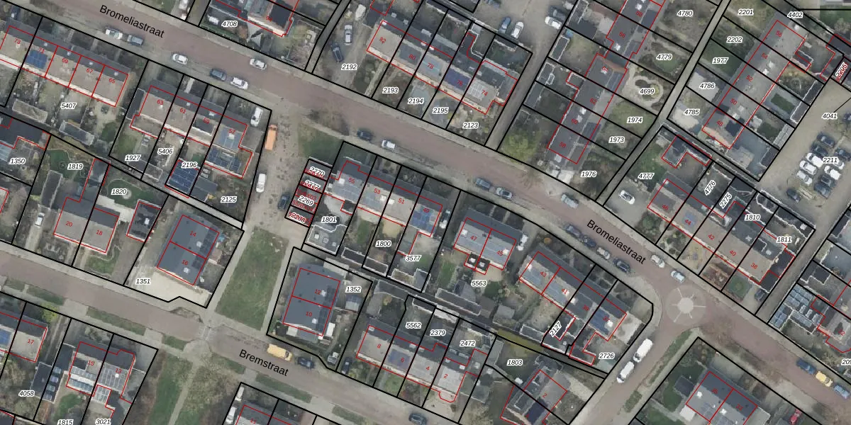 Het perceel waarop Bromeliastraat 49 staat heeft een oppervlakte van 233 m². Dit is een middelgroot perceel. De perceeloppervlakte wordt geregistreerd door het Kadaster. Gedetailleerde informatie over de maten van dit perceel kunt u vinden in het rapport Kadastrale kaart met maatvoering van Bromeliastraat 49.