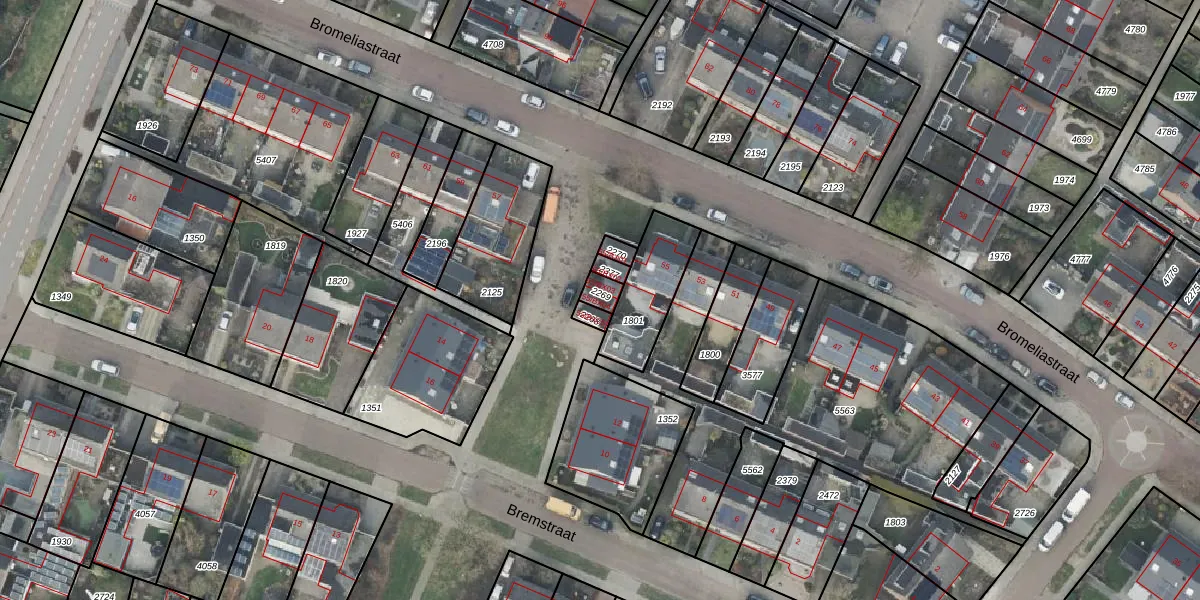 Het perceel waarop Bromeliastraat 55-BX04 staat heeft een oppervlakte van 34 m². Dit is een klein perceel. De perceeloppervlakte wordt geregistreerd door het Kadaster. Gedetailleerde informatie over de maten van dit perceel kunt u vinden in het rapport Kadastrale kaart met maatvoering van Bromeliastraat 55-BX04.