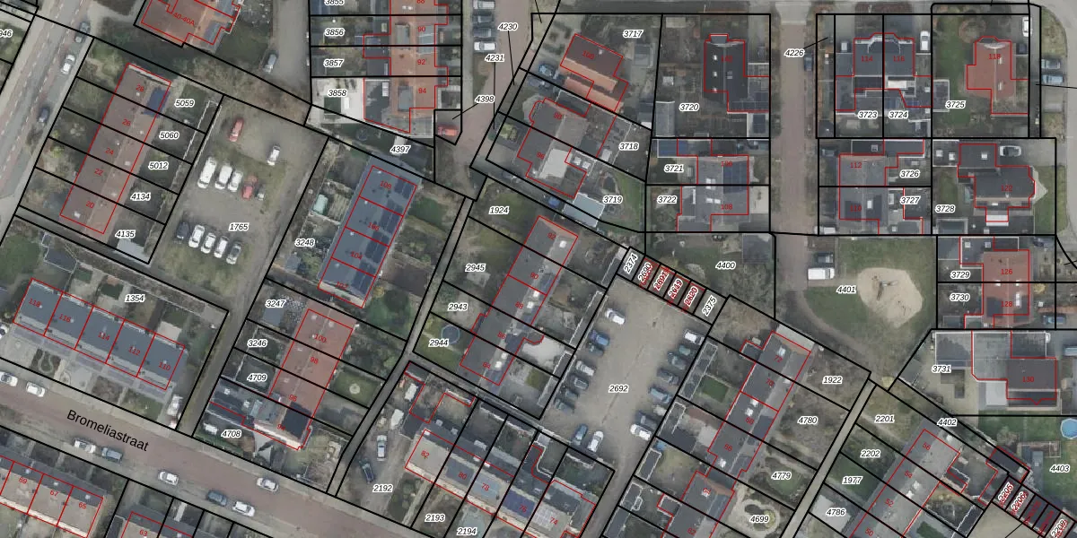 Bromeliastraat 90 is gelegen op kadastraal perceel DNK00O2945. Deze kadastrale aanduiding is uniek en wordt gebruikt door het Kadaster om eigendomsrechten en andere zakelijke rechten vast te leggen. Het perceel maakt onderdeel uit van de kadastrale gemeente Denekamp.