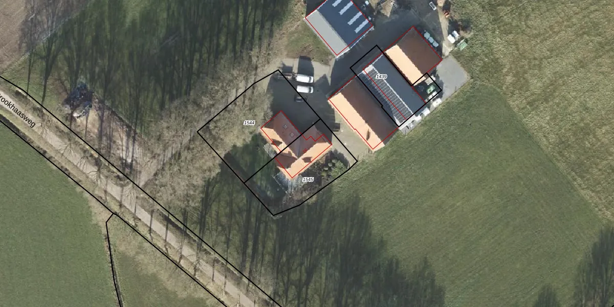 Brookhaasweg 16 is gelegen op kadastraal perceel DNK00M1545. Deze kadastrale aanduiding is uniek en wordt gebruikt door het Kadaster om eigendomsrechten en andere zakelijke rechten vast te leggen. Het perceel maakt onderdeel uit van de kadastrale gemeente Denekamp.