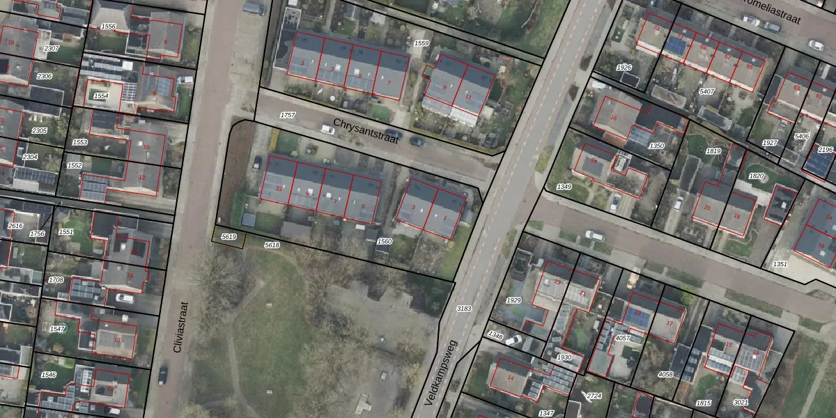 Het perceel waarop Chrysantstraat 3 staat heeft een oppervlakte van 1513 m². Dit is een zeer groot perceel. De perceeloppervlakte wordt geregistreerd door het Kadaster. Gedetailleerde informatie over de maten van dit perceel kunt u vinden in het rapport Kadastrale kaart met maatvoering van Chrysantstraat 3.