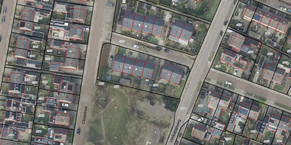 Het perceel waarop Chrysantstraat 5 staat heeft een oppervlakte van 1513 m². Dit is een zeer groot perceel. De perceeloppervlakte wordt geregistreerd door het Kadaster. Gedetailleerde informatie over de maten van dit perceel kunt u vinden in het rapport Kadastrale kaart met maatvoering van Chrysantstraat 5.