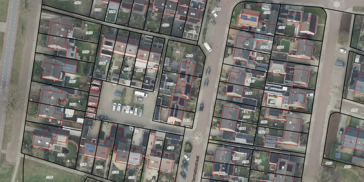 Clematisstraat 108 is gelegen op kadastraal perceel DNK00O4617. Deze kadastrale aanduiding is uniek en wordt gebruikt door het Kadaster om eigendomsrechten en andere zakelijke rechten vast te leggen. Het perceel maakt onderdeel uit van de kadastrale gemeente Denekamp.