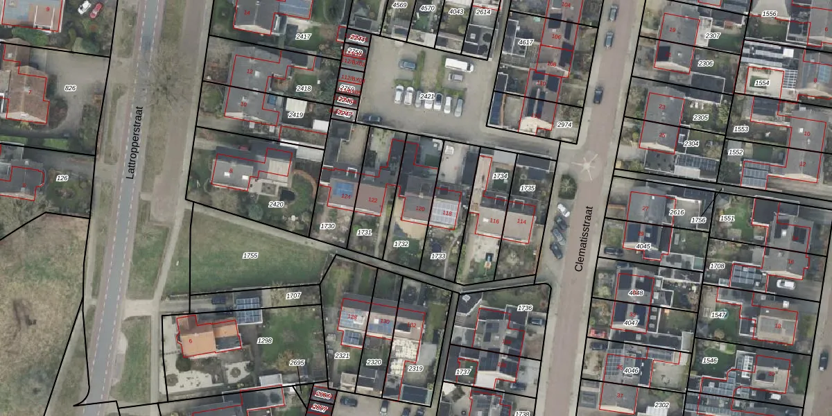 Het perceel waarop Clematisstraat 120 staat heeft een oppervlakte van 287 m². Dit is een middelgroot perceel. De perceeloppervlakte wordt geregistreerd door het Kadaster. Gedetailleerde informatie over de maten van dit perceel kunt u vinden in het rapport Kadastrale kaart met maatvoering van Clematisstraat 120.
