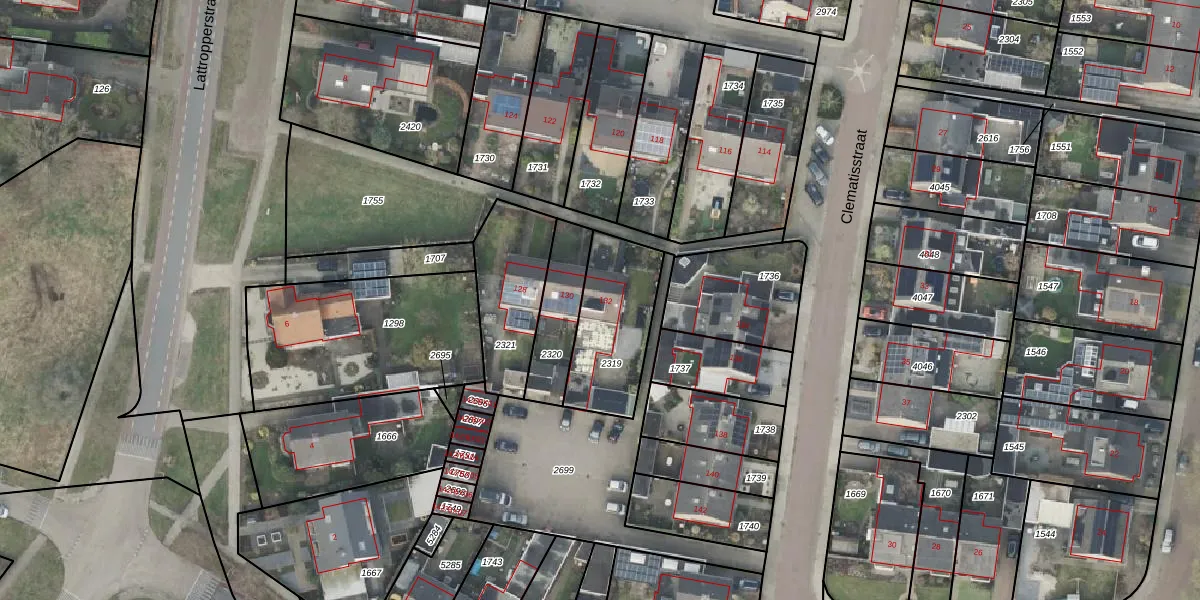 Gebruik de zoekbalk of klik op een perceel voor informatie over de adressen binnen dit perceel.