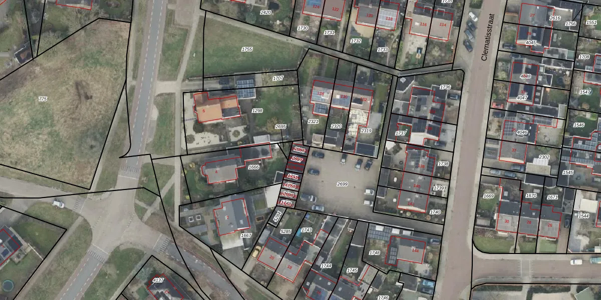Clematisstraat 142-BX01 is gelegen op kadastraal perceel DNK00O2696. Deze kadastrale aanduiding is uniek en wordt gebruikt door het Kadaster om eigendomsrechten en andere zakelijke rechten vast te leggen. Het perceel maakt onderdeel uit van de kadastrale gemeente Denekamp.