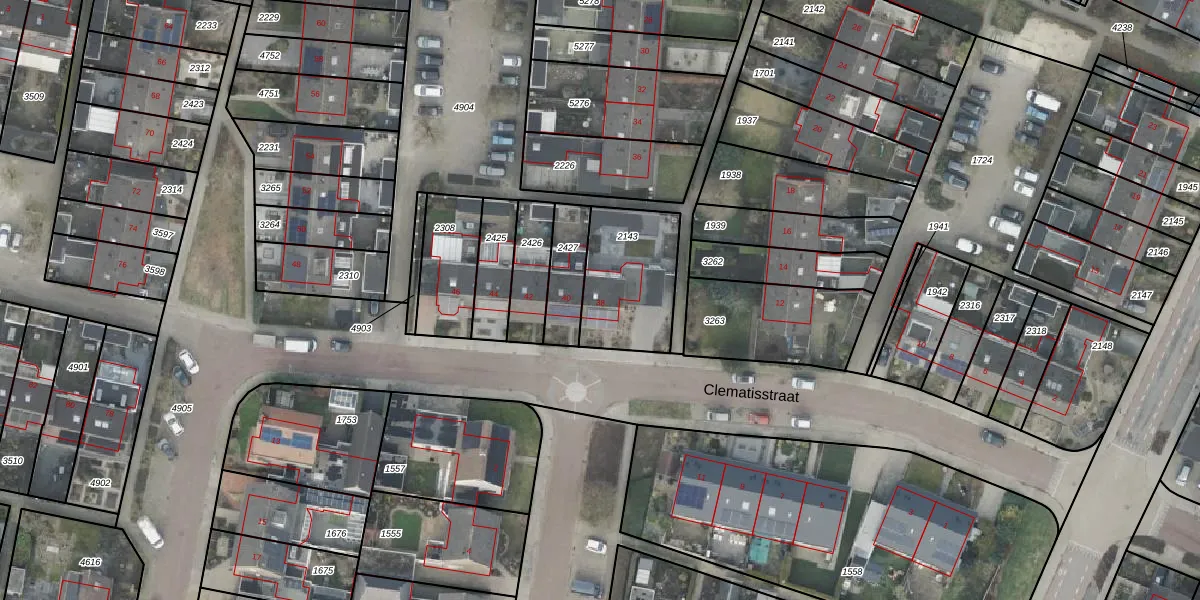 Het perceel waarop Clematisstraat 38 staat heeft een oppervlakte van 355 m². Dit is een groot perceel. De perceeloppervlakte wordt geregistreerd door het Kadaster. Gedetailleerde informatie over de maten van dit perceel kunt u vinden in het rapport Kadastrale kaart met maatvoering van Clematisstraat 38.