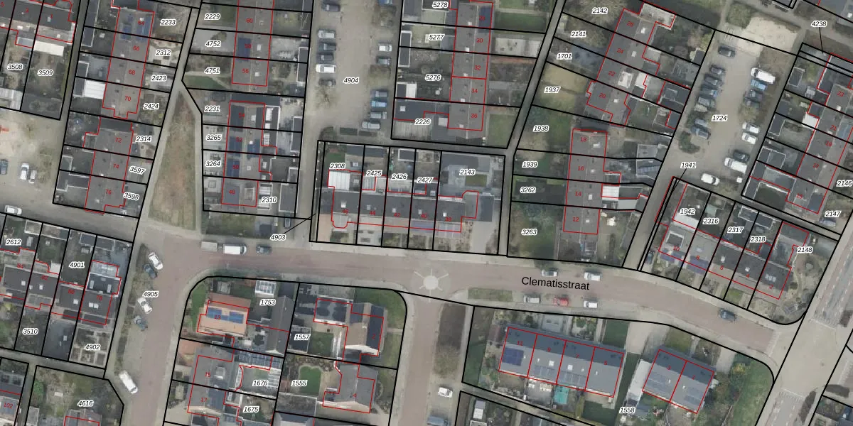 Het perceel waarop Clematisstraat 40 staat heeft een oppervlakte van 143 m². Dit is een middelgroot perceel. De perceeloppervlakte wordt geregistreerd door het Kadaster. Gedetailleerde informatie over de maten van dit perceel kunt u vinden in het rapport Kadastrale kaart met maatvoering van Clematisstraat 40.