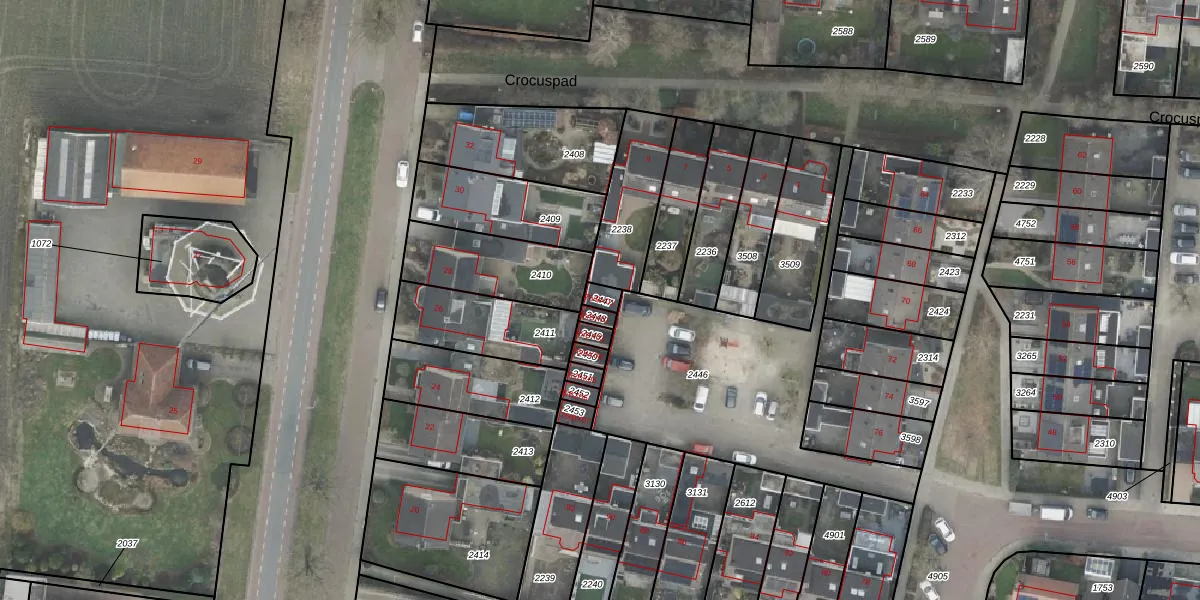 Gebruik de zoekbalk of klik op een perceel voor informatie over de adressen binnen dit perceel.