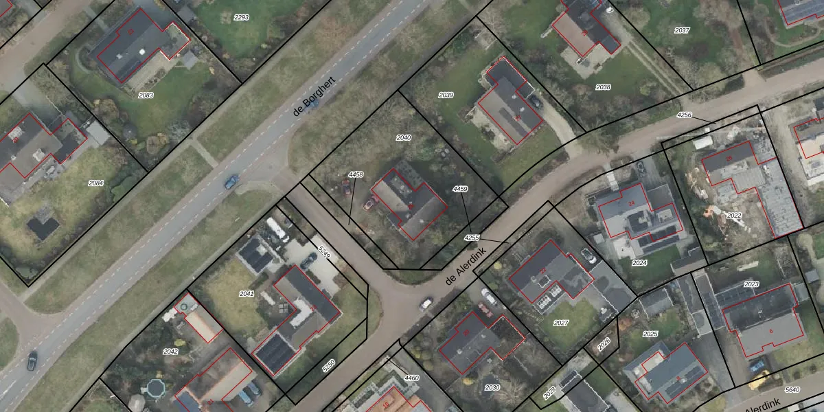 de Alerdink 25 is gelegen op kadastraal perceel DNK00O2040. Deze kadastrale aanduiding is uniek en wordt gebruikt door het Kadaster om eigendomsrechten en andere zakelijke rechten vast te leggen. Het perceel maakt onderdeel uit van de kadastrale gemeente Denekamp.