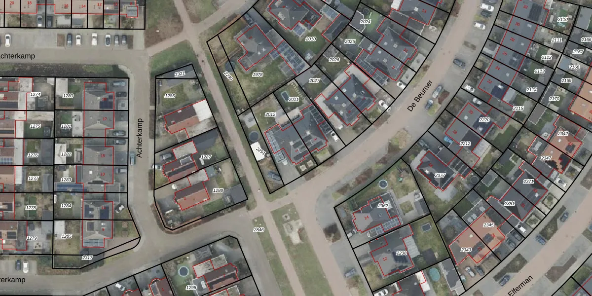 Het perceel waarop De Beumer 1 staat heeft een oppervlakte van 325 m². Dit is een groot perceel. De perceeloppervlakte wordt geregistreerd door het Kadaster. Gedetailleerde informatie over de maten van dit perceel kunt u vinden in het rapport Kadastrale kaart met maatvoering van De Beumer 1.