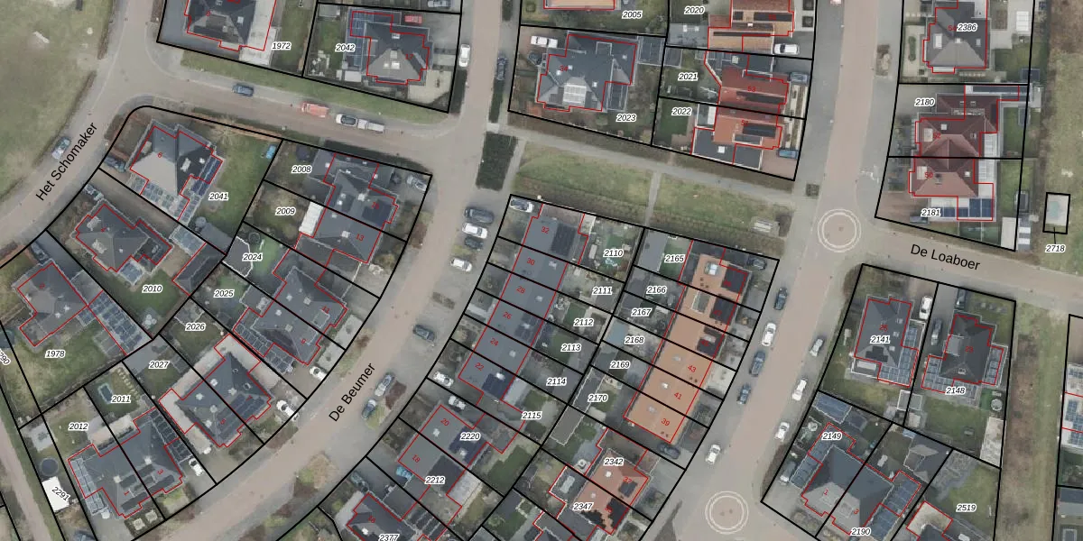 Gebruik de zoekbalk of klik op een perceel voor informatie over de adressen binnen dit perceel.
