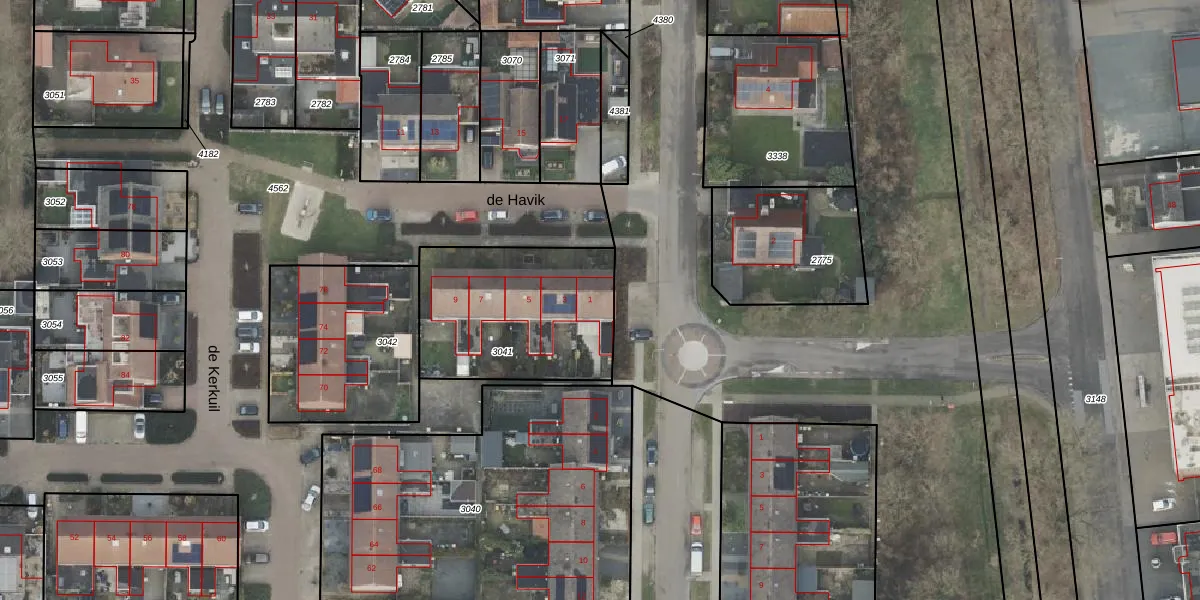 de Havik 1 is gelegen op kadastraal perceel DNK00O3041. Deze kadastrale aanduiding is uniek en wordt gebruikt door het Kadaster om eigendomsrechten en andere zakelijke rechten vast te leggen. Het perceel maakt onderdeel uit van de kadastrale gemeente Denekamp.