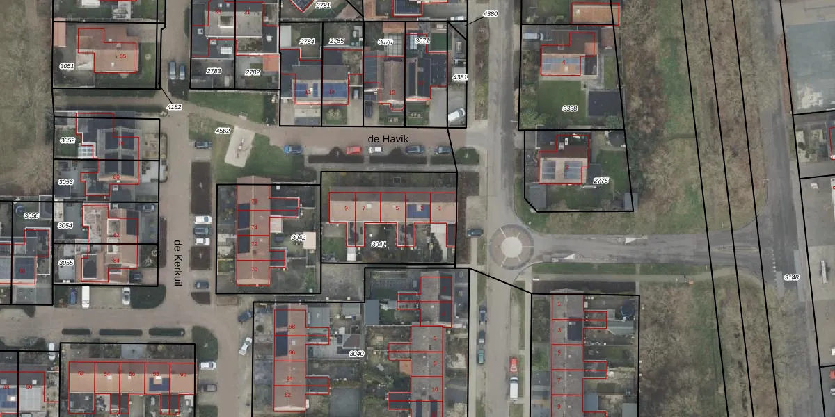 de Havik 3 is gelegen op kadastraal perceel DNK00O3041. Deze kadastrale aanduiding is uniek en wordt gebruikt door het Kadaster om eigendomsrechten en andere zakelijke rechten vast te leggen. Het perceel maakt onderdeel uit van de kadastrale gemeente Denekamp.