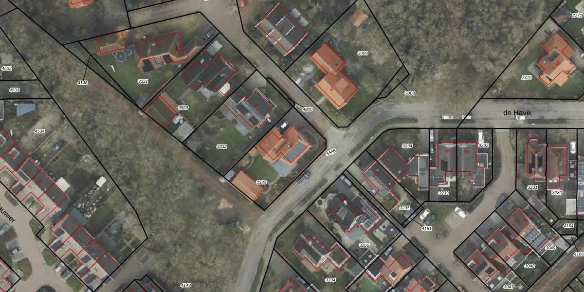 de Havik 58 is gelegen op kadastraal perceel DNK00O3333. Deze kadastrale aanduiding is uniek en wordt gebruikt door het Kadaster om eigendomsrechten en andere zakelijke rechten vast te leggen. Het perceel maakt onderdeel uit van de kadastrale gemeente Denekamp.