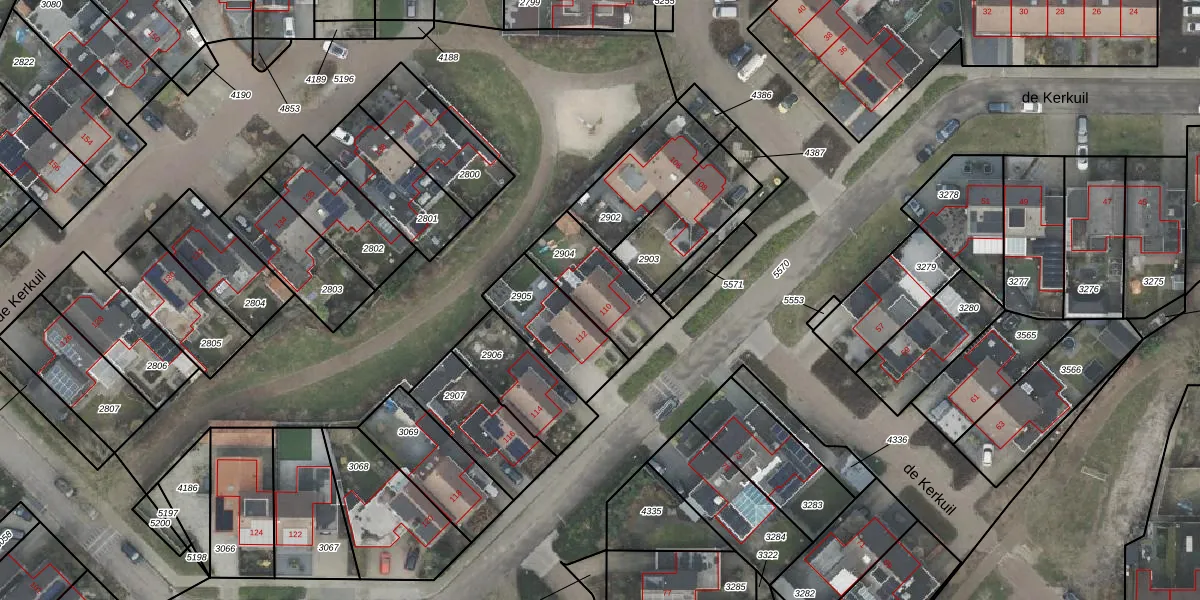 Het perceel waarop de Kerkuil 110 staat heeft een oppervlakte van 250 m². Dit is een middelgroot perceel. De perceeloppervlakte wordt geregistreerd door het Kadaster. Gedetailleerde informatie over de maten van dit perceel kunt u vinden in het rapport Kadastrale kaart met maatvoering van de Kerkuil 110.