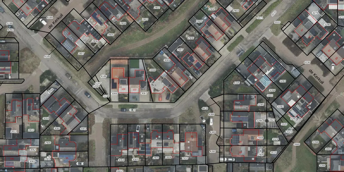 Het perceel waarop de Kerkuil 120 staat heeft een oppervlakte van 353 m². Dit is een groot perceel. De perceeloppervlakte wordt geregistreerd door het Kadaster. Gedetailleerde informatie over de maten van dit perceel kunt u vinden in het rapport Kadastrale kaart met maatvoering van de Kerkuil 120.