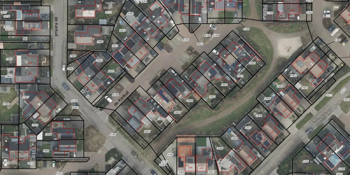 Het perceel waarop de Kerkuil 132 staat heeft een oppervlakte van 250 m². Dit is een middelgroot perceel. De perceeloppervlakte wordt geregistreerd door het Kadaster. Gedetailleerde informatie over de maten van dit perceel kunt u vinden in het rapport Kadastrale kaart met maatvoering van de Kerkuil 132.