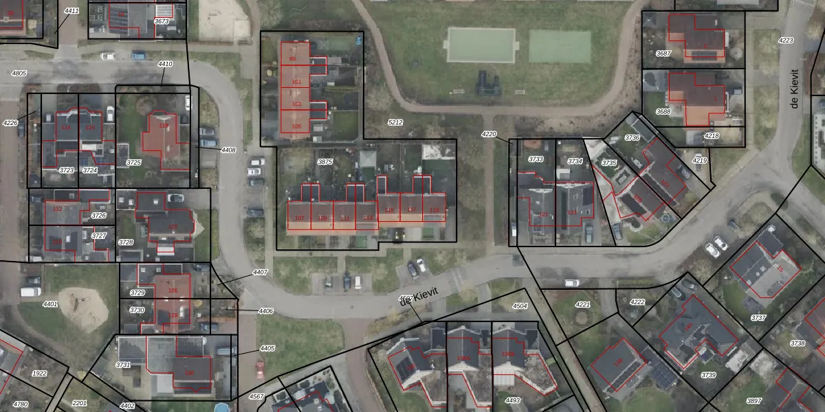 de Kievit 117 is gelegen op kadastraal perceel DNK00O3875. Deze kadastrale aanduiding is uniek en wordt gebruikt door het Kadaster om eigendomsrechten en andere zakelijke rechten vast te leggen. Het perceel maakt onderdeel uit van de kadastrale gemeente Denekamp.