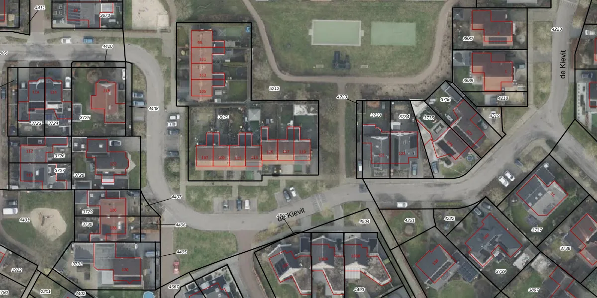 de Kievit 119 is gelegen op kadastraal perceel DNK00O3875. Deze kadastrale aanduiding is uniek en wordt gebruikt door het Kadaster om eigendomsrechten en andere zakelijke rechten vast te leggen. Het perceel maakt onderdeel uit van de kadastrale gemeente Denekamp.