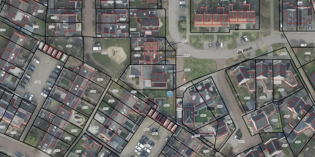 Het perceel waarop de Kievit 130 staat heeft een oppervlakte van 487 m². Dit is een groot perceel. De perceeloppervlakte wordt geregistreerd door het Kadaster. Gedetailleerde informatie over de maten van dit perceel kunt u vinden in het rapport Kadastrale kaart met maatvoering van de Kievit 130.