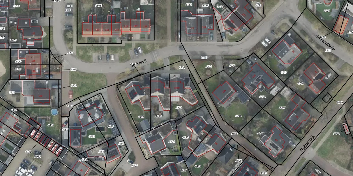 Het perceel waarop de Kievit 136-B staat heeft een oppervlakte van 373 m². Dit is een groot perceel. De perceeloppervlakte wordt geregistreerd door het Kadaster. Gedetailleerde informatie over de maten van dit perceel kunt u vinden in het rapport Kadastrale kaart met maatvoering van de Kievit 136-B.